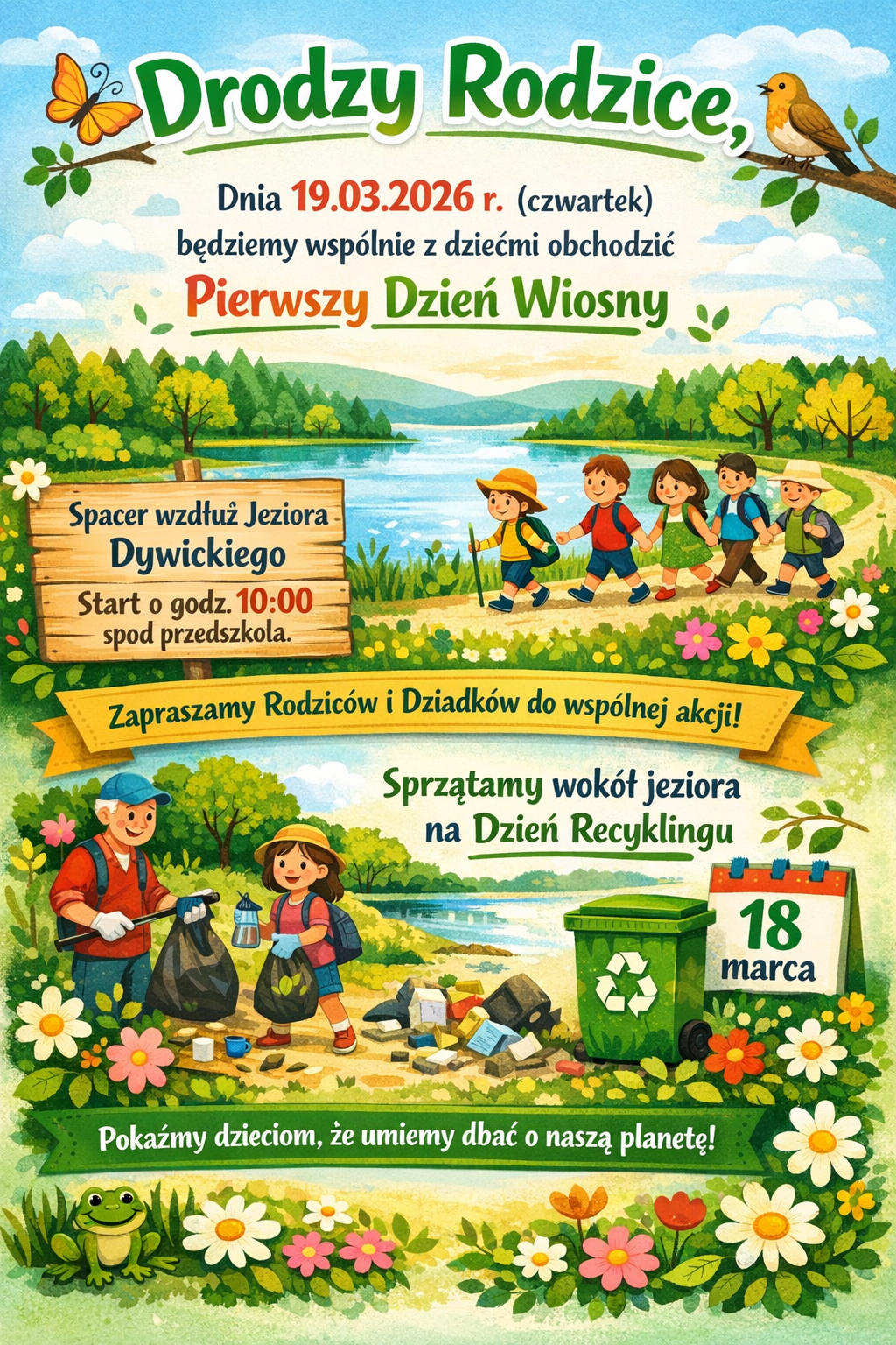 20.03.2026r. Piątek- Pierwszy Dzień Wiosny połączony z Dniem Kolorowej Skarpetki. Tego dnia proszę o ubranie dzieci wiosennie w miarę możliwości (dziewczynki ubiór z elementami kwiatków lub ubiór w kolorze zielonym, chłopcy ubranie w kolorze zielonym) oraz o założenie dwóch różnych skarpetek jako solidarność i okazanie wsparcia osobom z Zespołem Downa.